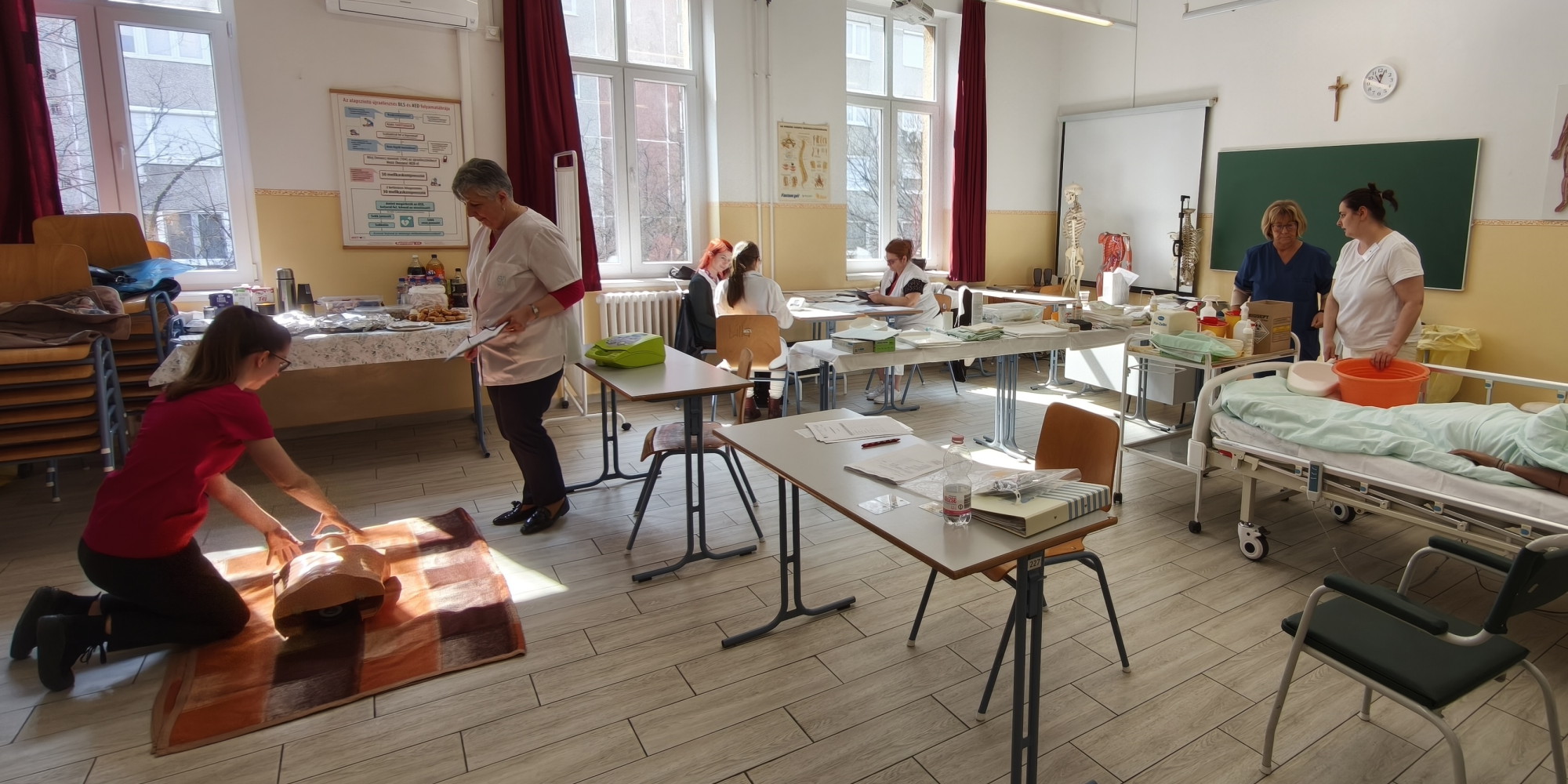 Idén a 4. alkalommal rendezte meg a Magyar Egészségügyi Szakdolgozói Kamara (MESzK) Iskolánkból hét tanuló jutott a március 18-án megrendezésre kerülő országos döntőbe, ahol Elsősegélynyújtási alapismeretek (alapfokú iskolai végzettséggel) kategóriában Pati Nagy Bernadett (11.A) szintén 1. helyezett lett! Felkészítő tanára: Dr. Féjáné Tóth Emese tanárnő. Ma három osztály (13.AF1-2-3) tett alapvizsgát. Gratulálunk a sikeres vizsgához! Köszönjük a felkészítők (és a vizsga szervezésében, lebonyolításában résztvevő kollégák) munkáját is. Kedves Jelentkezők! Tisztelt Szülők!