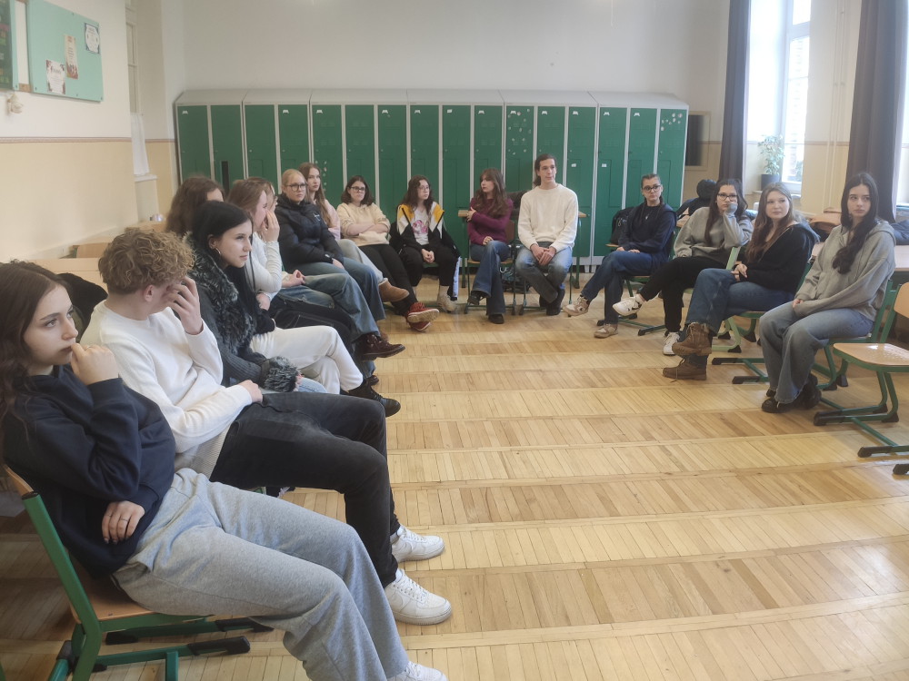 A műsor az egész osztályt megmozgatta: volt benne párbeszéd, filmbejátszás, felolvasás, színházi jelenet, Köszönjük a felkészülést és a színvonalas előadást! A többéves hagyomány szerint, idén is tartottunk pályaorientációs napot. Idén hüsz helyszínre lehetett jelentkezni, három körben, így Köszönjük az előadóknak, megjelent intézményeknek, szervezeteknek és persze
