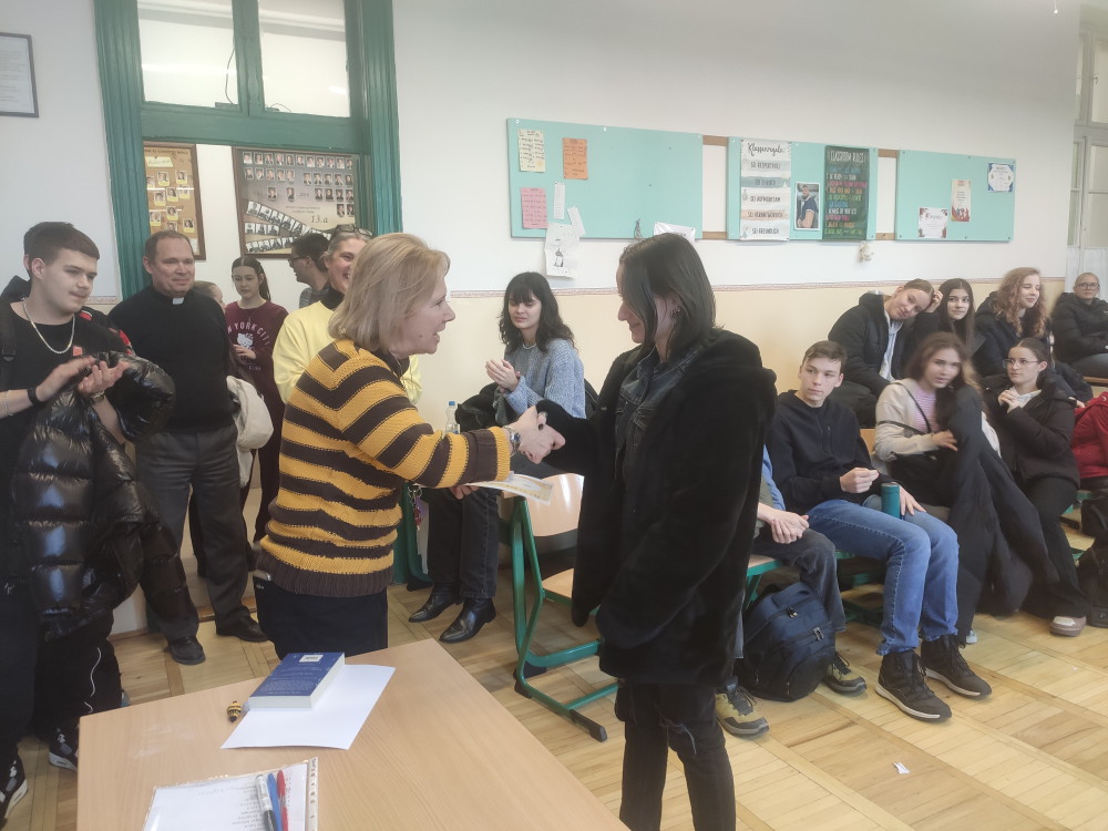 A több, mint egy órás beszélgetés során Köszönjük a ritka és maradandó élményt Kati néninek és Andreának. Kezdődik a 2026. év (január 6. kedd 3. óra): iskolaszentelés. 2 0 + C + M + B + 2 6 Christus Mansionem Benedicat! + Krisztus áldja meg ezt a házat! Köszönjük a 9/Ny.N osztály (Virág Nikoletta tanárnő) és a kórus (Himberger Judit tanárnő) segítségét a lebonyolításban!